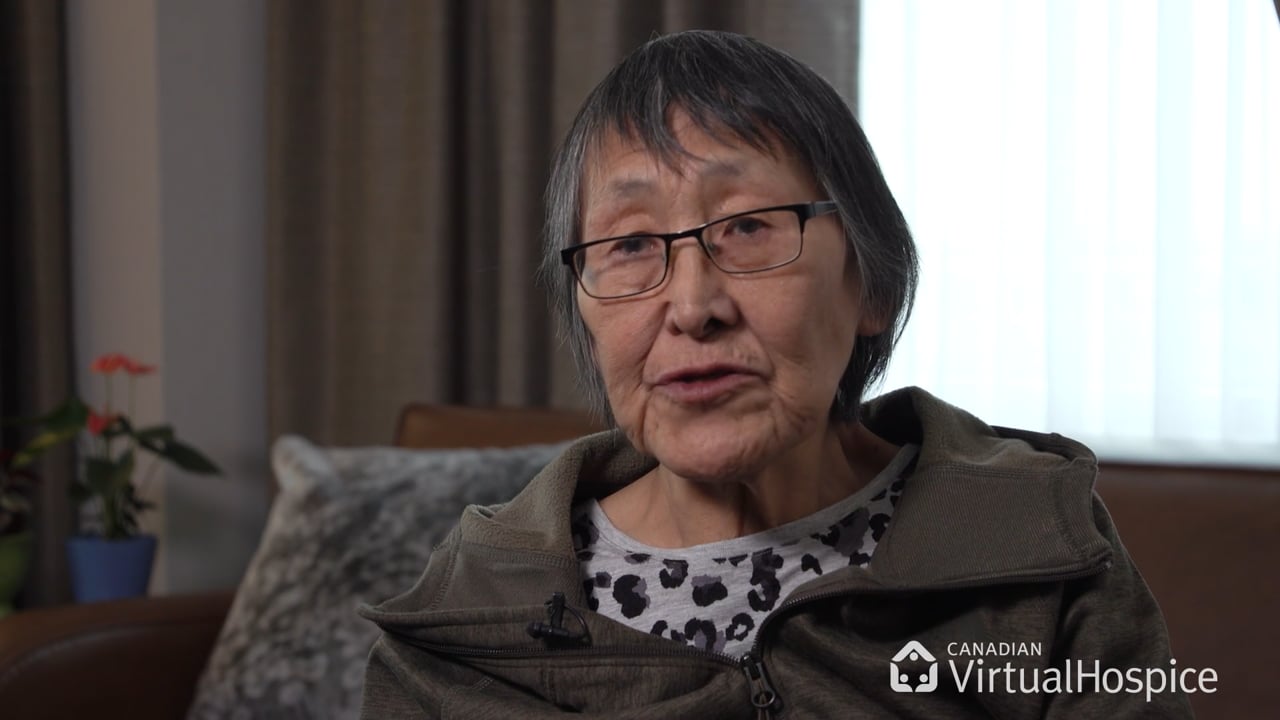 Rosemarie explains the need for both western and traditional healing methods. Rosemarie Meyok is an Inuit Elder from Kugluktuk in the Kitikmeot Region of Nunavut. She provided end of life care for both her parents.